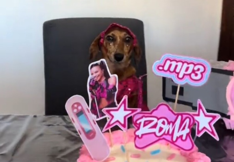 En la publicación se observan distintos detalles relacionados con la artista, sobre todo una estética marcada por el álbum .MP3 que la cantante publicó en 2023. Las referencias directas se pueden ver tanto en la torta como en la piñata, en las que también destaca el nombre de la mascota, Roma.