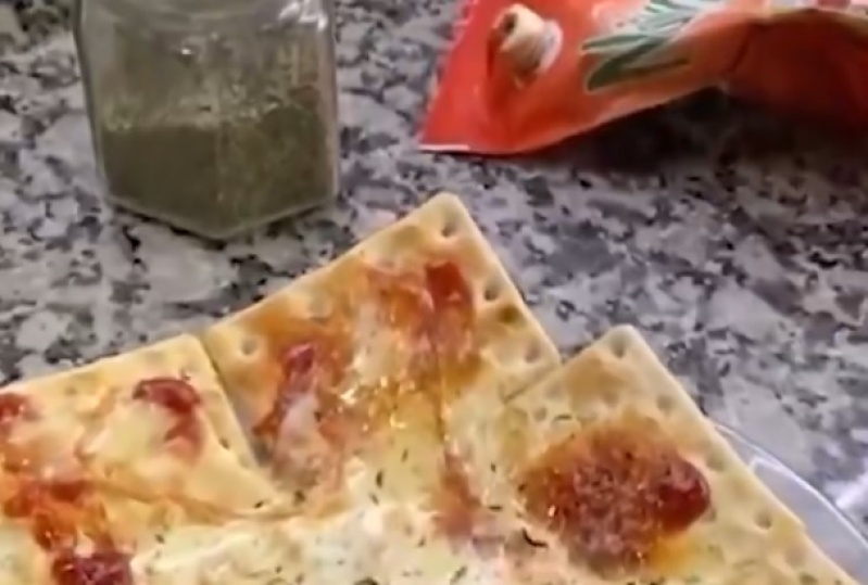 Se trata de una “pizza” pero sin masa. O, en realidad, sí: masa de galletitas de agua.