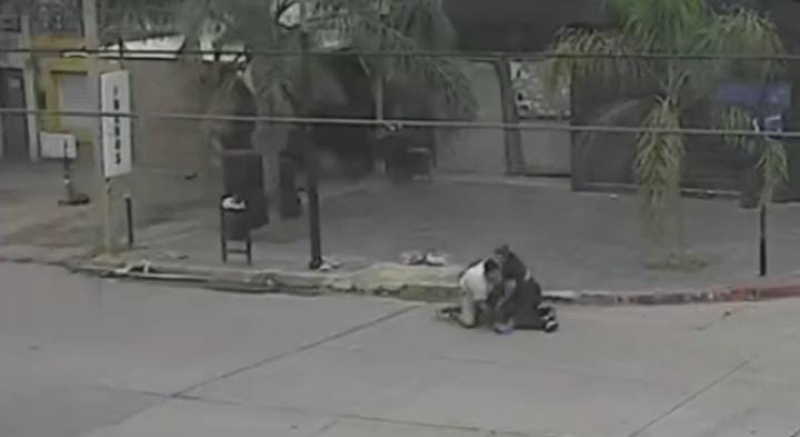 El video de las cámaras de seguridad municipales que encabeza esta nota muestra al sospechoso, que vestía una campera de color verde y bermudas negras, parado en una esquina. De repente, cuando comenzaba a caminar por la avenida Leandro N. Alem, un hombre y una mujer corrieron para interceptarlo y evitar, de esa manera, que se escapara.