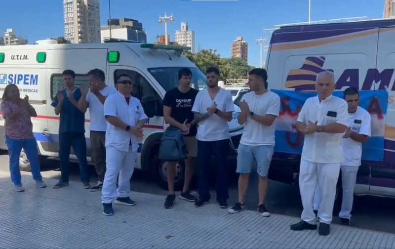 En ese marco, los manifestantes llegaron a Plaza Moreno para expresar su pedido y después estacionaron al menos seis ambulancias justo frente al Palacio Municipal. La víctima trabajaba en el Servicio de Emergencias Médicas (SIPEM).