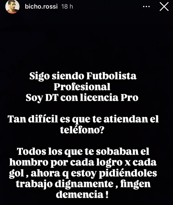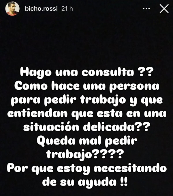 Es el caso de un histórico goleador de la región como Javier Rossi, quien realizó un desesperado pedido a través de las redes sociales. "Hago una consulta: ¿cómo hace una persona para pedir trabajo y que entiendan que está en una situación delicada? ¿Queda mal pedir trabajo? Porque estoy necesitando de su ayuda", rogó en una historia de Instagram, que causó impacto.