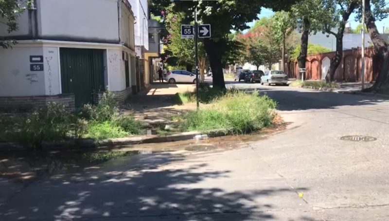 Vecinos reclaman por una pérdida de agua en una cuadra de La Plata.