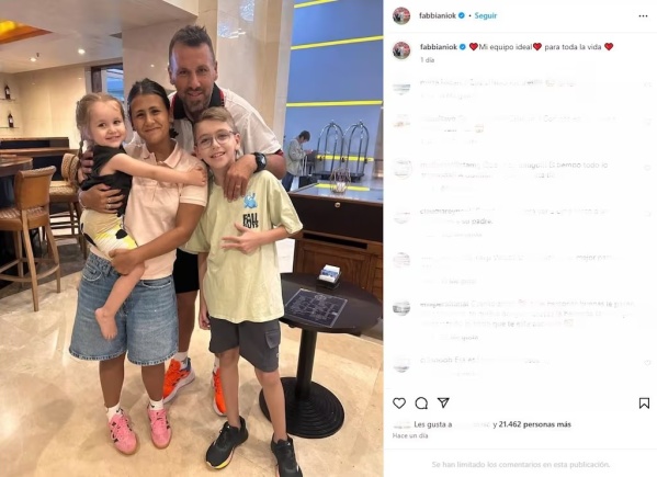 En la imagen se lo ve al Ogro con Uma (que tiene a upa a Ámbar) y Santino, ambos frutos de la relación de Cristian con Gimena Vascon, quien también dejó huella de esta postal especial en su muro.