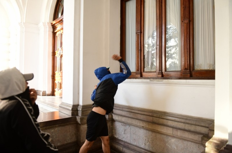La Policía detuvo a cuatro personas por los daños provocados al Palacio Municipal de La Plata este miércoles por la tarde. Los acusados no eran parte de la marcha por el crimen de Kim Gómez, la nena de siete años que murió al ser arrastrada casi quince cuadras por un auto robado.