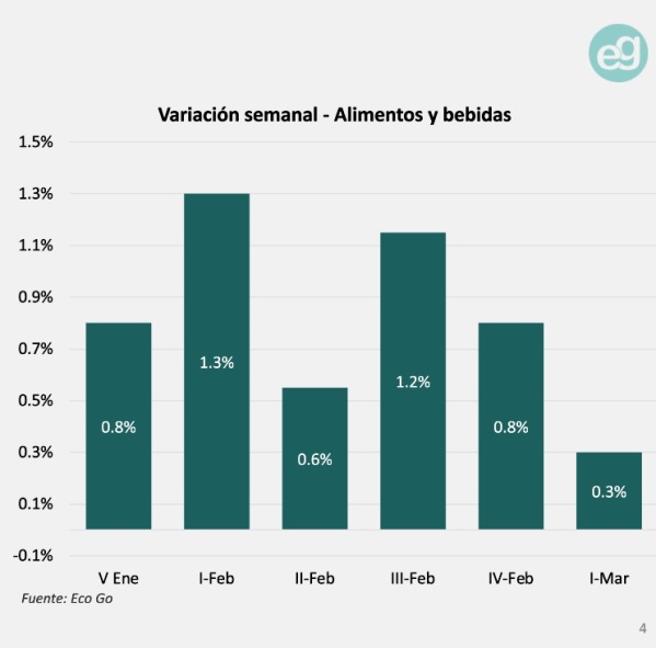 El cierre de febrero, de acuerdo a las estimaciones de EcoGo, no había sido alentador: la inflación habría sido de 1,2% en la tercera semana de febrero, y de 0,8% en la cuarta.