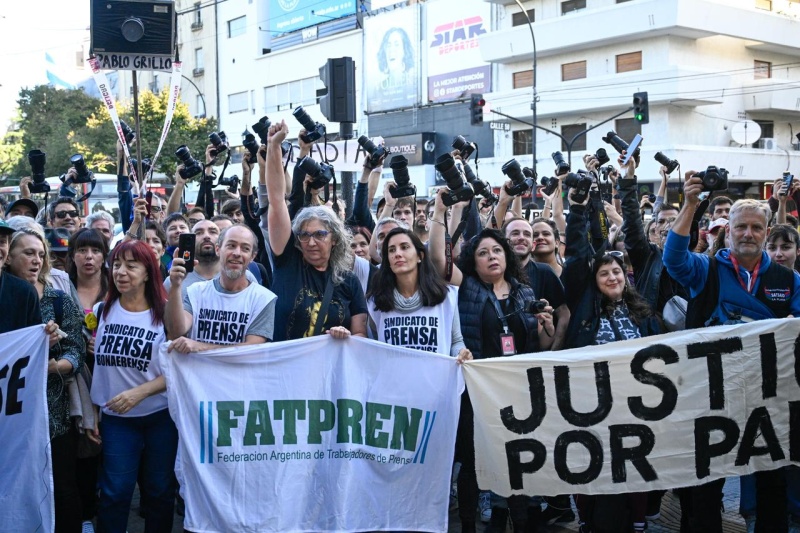 Después de la represión en el Congreso que terminó con 124 detenidos y 20 manifestantes heridos, trabajadores de prensa, reporteros gráficos, cineastas, comunicadores populares y estudiantes de la región realizaron un camarazo en La Plata para repudiar la violencia contra el fotógrafo Pablo Grillo.