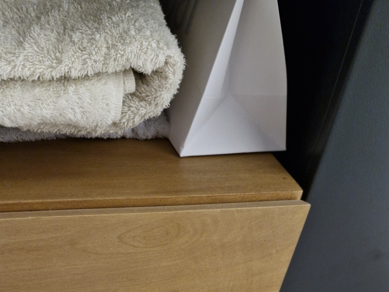 En la imagen que publicó la mujer se puede ver que en el mueble del baño, donde estaban los toallones, había una bolsa de cartón blanca, la cual su marido escondió para dársela el día de su cumpleaños, pero se podía encontrar con una simple mirada.