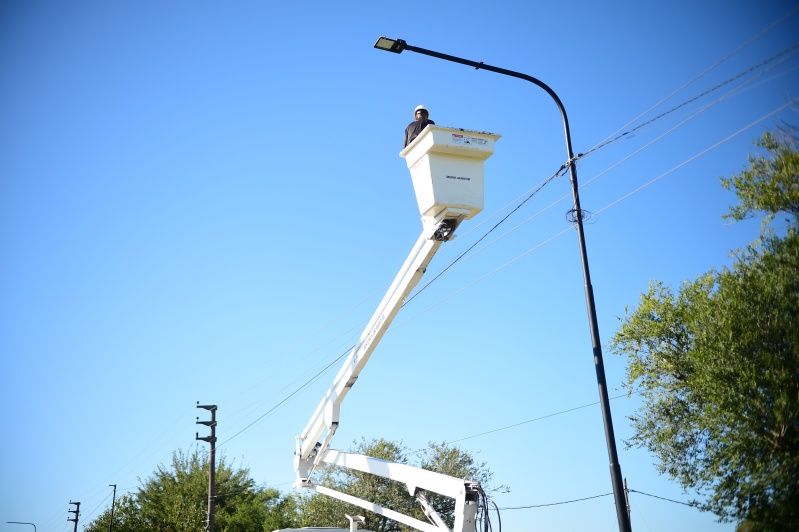Las tareas, que abarcan obras de conservación, adecuación, modernización tecnológica y remodelación del sistema lumínico, se llevaron a cabo en la zona de 411 y 152, donde se reemplazó una columna de 10 metros en la vía pública frente a la Escuela Municipal Las Algarrobas, brindando mayor iluminación sobre la parada de micros.