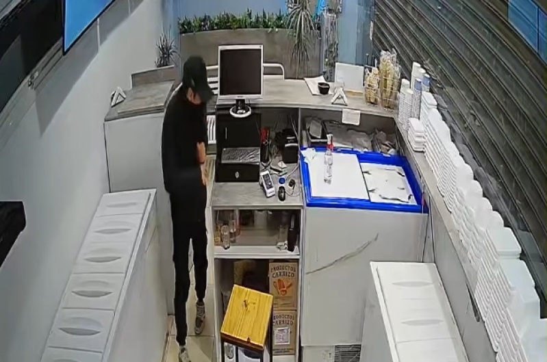 En el video se puede observar que un sujeto logra levantar la persiana. Estaba vestido de negro y utilizó un cuello oscuro para tapar su rostro.