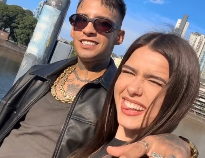 En la imagen el músico de RKT tenía un brazo apoyado sobre el hombro de la cantante, en lo que aparenta ser un paseo por Puerto Madero. Ambos sonríen.