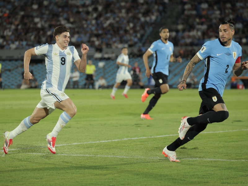 En el encuentro que marcó el cierre de la decimotercera fecha de las eliminatorias sudamericanas el actual campeón del mundo le ganó a la "Celeste" por el tanto del ex jugador de Vélez que a los 23 minutos del segundo tiempo recibió un pase por la banda izquierda de Julián Álvarez, controló cerca del área del grande y sacó un disparo con derecha que se clavó en el ángulo izquierdo de Sergio Rochet.