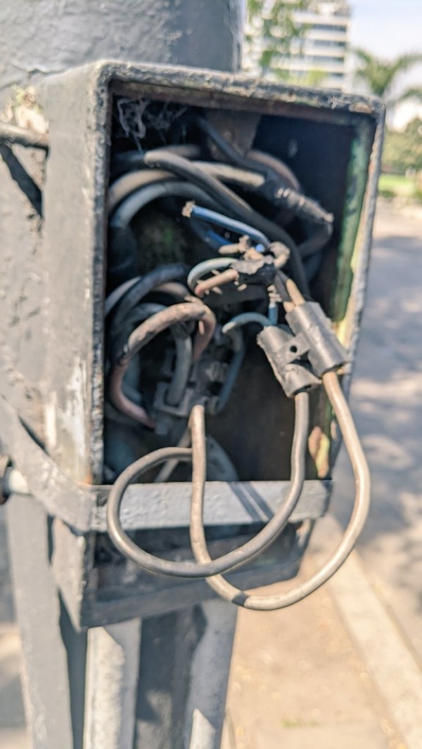 Como se puede observar en la imagen, los cables están sueltos y podrían resultar peligrosos.