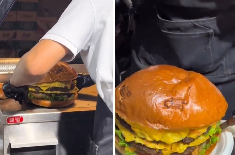 En un video que apareció en X, se ve a un cocinero transportándola con dos espátulas grandes para apoyarla en un plato. En ese momento se puede apreciar el tamaño de la enorme hamburguesa.