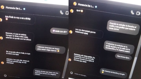 En los mensajes, Fede le insistía a Flor para verse, y ella le aclaraba que no podía hacerlo ya que estaba casada. “¿Sabés lo que más me ponía la palo? Cuando te entraba te besaba el cuello y me pedías que te susurre cosas porno”, dice quien se hace pasar por Fede Bal. “Vos sos demasiado porno, Federico”, le contesta la supuesta Flor entre risas.
