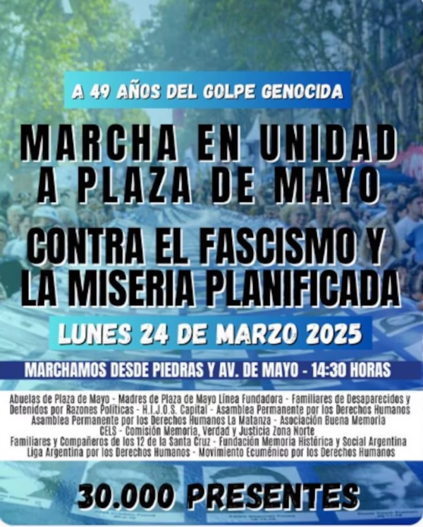 Por primera vez en casi dos décadas, organizaciones sociales y de Derechos Humanos y partidos políticos se movilizarán en unidad este lunes, a 49 años del Golpe Militar de 1976.
