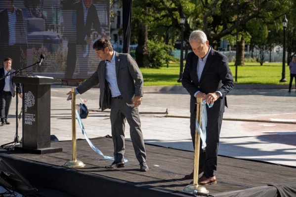 A continuación, Julio Alak junto a Axel Kicillof realizaron el tradicional corte de cinta para inaugurar la Plaza San Martín.