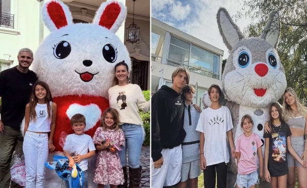 Por un lado, la empresaria pasó el día junto a sus hijos y mostró una tierna foto en su cuenta de Instagram junto a un conejo de Pascuas gigante para la foto. Por su parte, la China también estuvo junto a su familia, incluido Icardi, y con… ¡un conejo gigante!