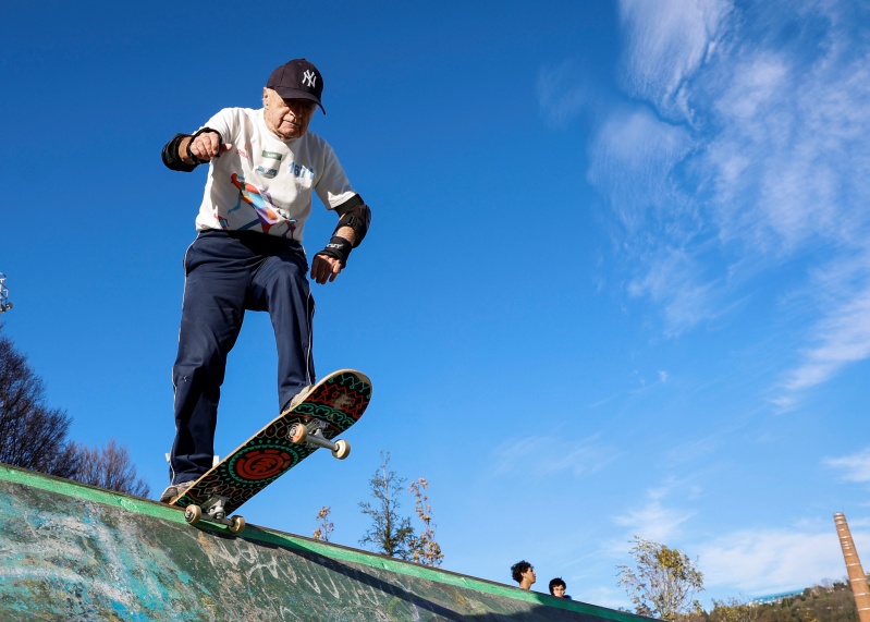En una pista de patinaje del norte de España, rodeado de jóvenes patinadores vestidos con ropa urbana floja, Juanjo Urbizu, un hombre de 88 años, deslumbra a quienes lo observan realizando trucos con su patineta desde el borde de un bowl grafiteado.