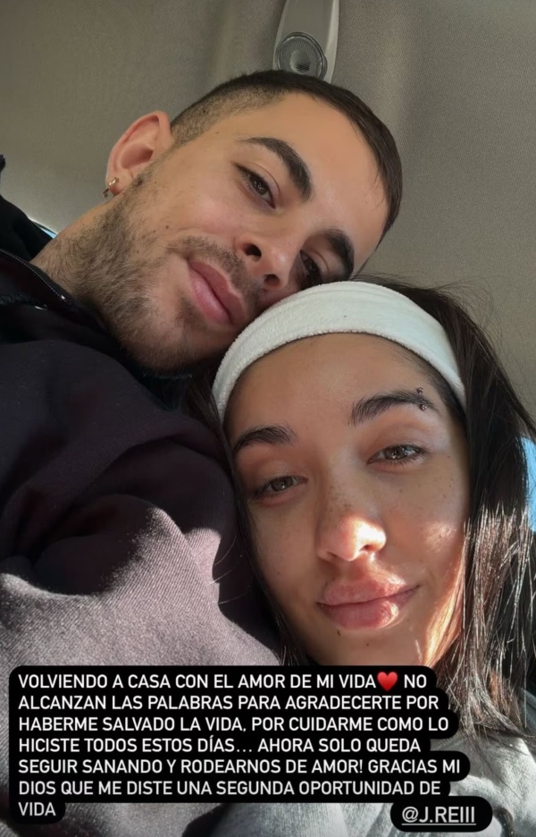 A través de una historia de Instagram, la cantante de 25 años dijo: “Volviendo a casa con el amor de mi vida. No alcanzan las palabras para agradecerte por haberme salvado la vida, por cuidarme como lo hiciste todos estos días. Ahora solo queda seguir sanando y rodearnos de amor. Gracias mi Dios que me diste una segunda oportunidad de vida”.
