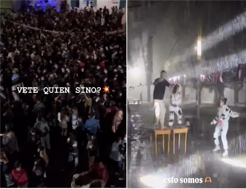 La tormenta encontró a decenas de estudiantes abrazando el verdadero espíritu universitario: el de la alegría colectiva, aún en las adversidades. Cuando el agua empezó a inundarlo todo, algunos buscaron refugio debajo de techos improvisados. Otros, los más osados, siguieron bailando bajo el diluvio, usando mesas y sillas como paraguas.