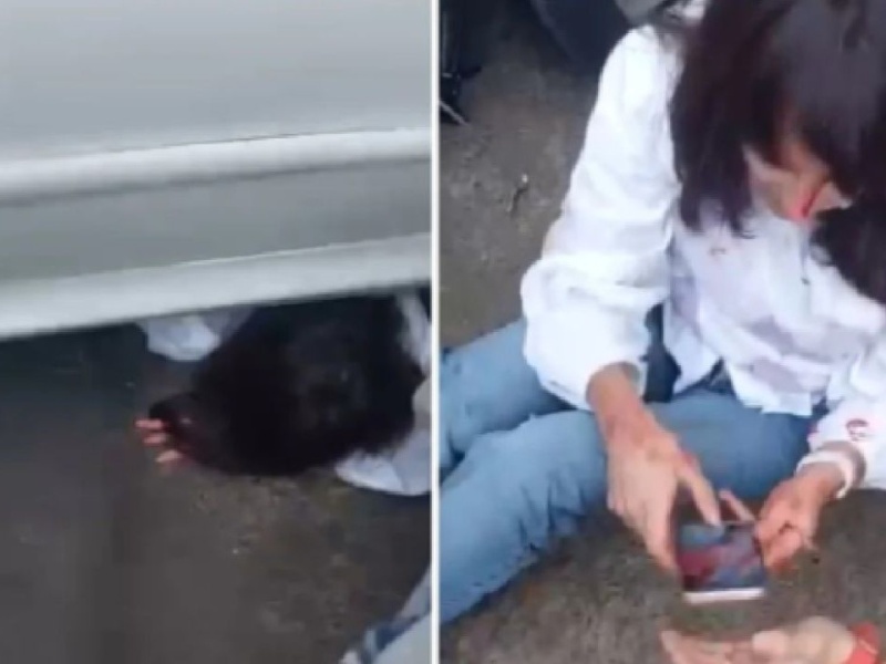 Los videos que circularon sobre el accidente muestran a la conductora con la cara y las manos ensangrentadas mientras es asistida por policías y transeúntes que pasaban por el lugar.
