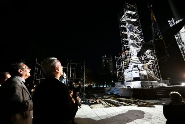 La reubicación de la obra forma parte de la reconstrucción del espacio público que lleva adelante la Municipalidad de La Plata en la plaza de avenida 7 y 44 y es la etapa final de un minucioso trabajo de puesta en valor que comenzó con el desmonte de sus partes: el águila, los tres cilindros de granito que formaban el fuste y cada una de las piezas que revestían el basamento de mampostería.