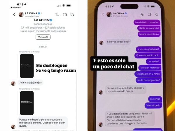 Latorre, por su parte, también había publicado parte de ese intercambio, donde acusaba a La China de afectar a las hijas de Icardi: “Te cagaste en dos niñas. ¿No te da vergüenza?”, expresó.