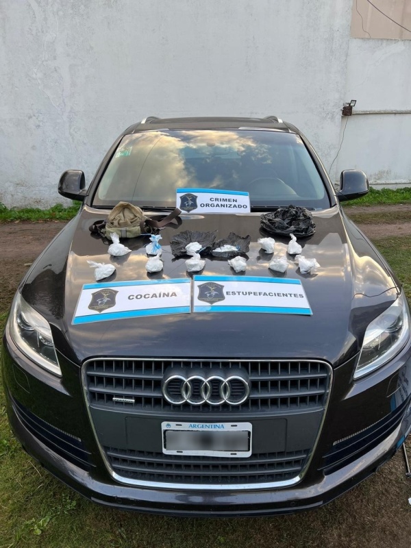 En el operativo se incautaron más de 2.500 gramos de cocaína en distintos formatos —incluido un ladrillo compacto de más de un kilo—, 19 gramos de marihuana, más de un kilo de sustancias de estiramiento y corte, 6 balanzas de precisión, 5 botellas de acetona, un pasaje de avión, 19 teléfonos celulares, dinero en efectivo, un vehículo de alta gama y elementos asociados a la preparación y distribución de estupefacientes.