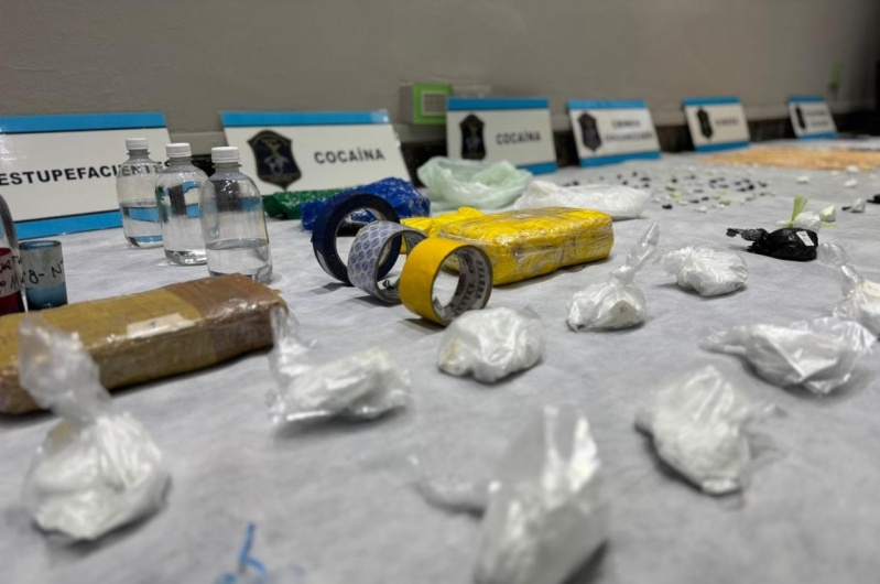 En el operativo se incautaron más de 2.500 gramos de cocaína en distintos formatos —incluido un ladrillo compacto de más de un kilo—, 19 gramos de marihuana, más de un kilo de sustancias de estiramiento y corte, 6 balanzas de precisión, 5 botellas de acetona, un pasaje de avión, 19 teléfonos celulares, dinero en efectivo, un vehículo de alta gama y elementos asociados a la preparación y distribución de estupefacientes.