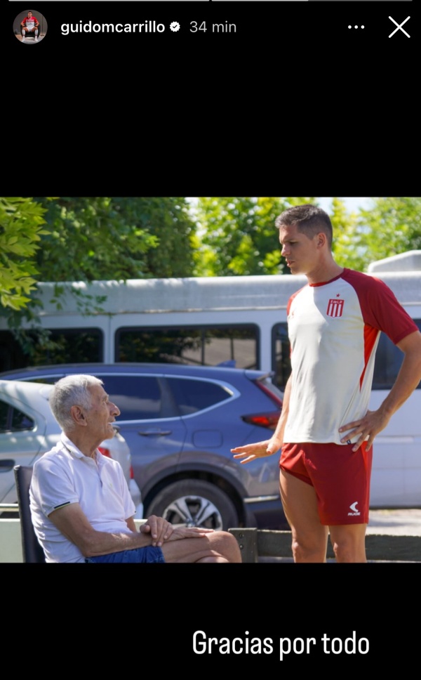 Guido Carrillo publicó una imagen junto a la "Bruja Padre" en el country y escribió "Gracias por todo". Recordemos que los días de Juan Ramón transcurrían en City Bell observando las prácticas del plantel profesional y contando sus vivencias con los futbolistas y aportando el ADN albirrojo.