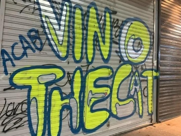 Esta frase, en letras distintivas y muchas veces en diversos colores, se volvió omnipresente en ciertas zonas de la ciudad. El artista o los artistas que firman este graffiti muestran en sus redes sociales, @vinothecat, los distintos puntos donde fueron plasmados estos murales.