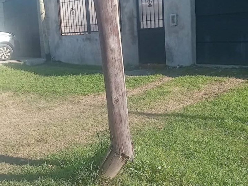 Los vecinos de la calle 140 entre 57 y 58, en La Plata, manifiestan su preocupación por un poste de luz que presenta un evidente deterioro en su base y una inclinación pronunciada hacia la vereda.