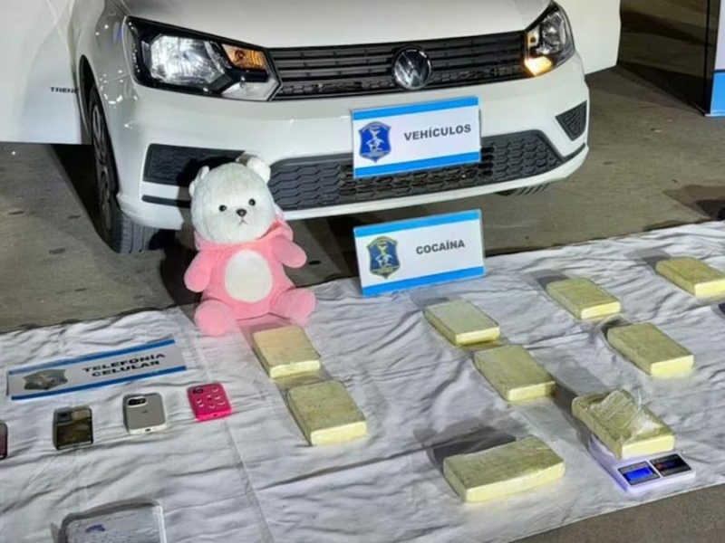 La camioneta llevaba 13 kilos de cocaína cargada en Concepción de Uruguay, Entre Ríos. También, le encontraron un osito de peluche rosa que se usaba, supuestamente, para esconder el dinero de los pagos. Allí, dentro había 98 mil dólares.