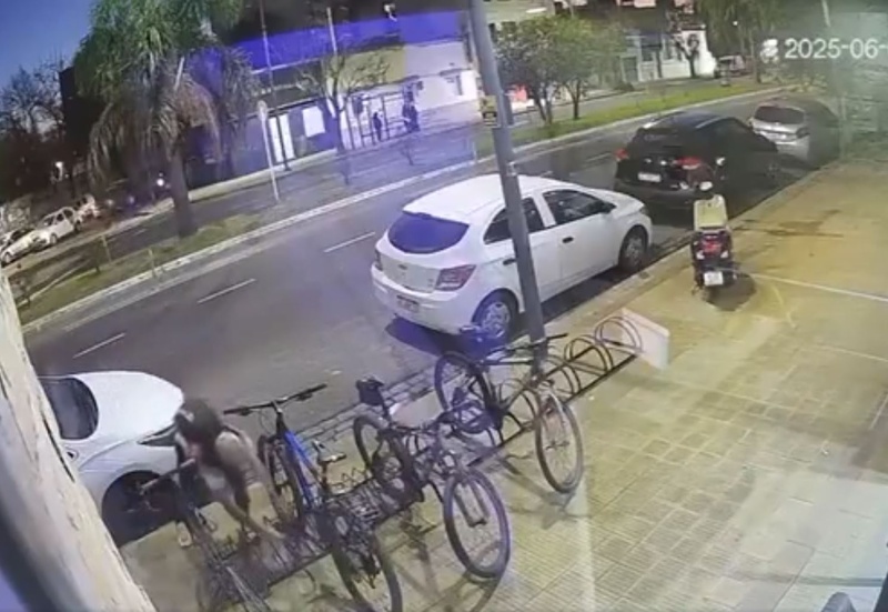 Las imágenes que registraron las cámaras de seguridad lo muestran acercándose al bicicletero y forcejeando la cadena con la que el dueño de la bici creía que la había asegurado. En cuestión de segundos, el delincuente tomó la bicicleta y se la llevó en el mismo momento en que otra persona salía del gimnasio.