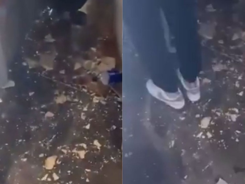 El fragmento se incrustó entre otras imágenes de ventanas destrozadas y edificios desarmados, así como entrevistas a los afectados por el proyectil.