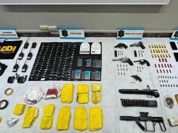 También secuestraron en el operativo siete armas de fuego y municiones, cinco handys, prendas de uniformes policiales y una credencial policial trucha a nombre de Escobar Arce.