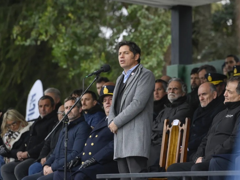 El gobernador de la provincia de Buenos Aires, Axel Kicillof, encabezó este lunes junto al ministro de Seguridad, Javier Alonso, el acto de jura de fidelidad a la bandera nacional de 2.736 cadetes que finalizarán este año el proceso de formación.