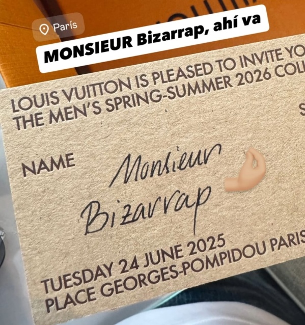 La marca de lujo francesa le envió una carta para que sea espectador del desfile de la colección de hombre primavera verano 2026 en la Paris Fashion Week, donde el artista se codeó con figuras importantísimas del mundo del espectáculo y el diseño. El escrito fue dirigido al "Monsieur Bizzarrap" y el argentino se agrandó.