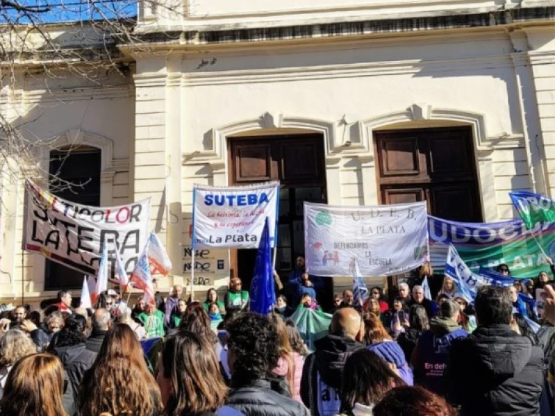 Tras el reciente caso de violencia que se vivió en la Escuela Normal N° 2 de La Plata donde una madre de un alumno agredió físicamente al preceptor y a la vicedirectora de la institución, el gremio SUTEBA decidió hacer un paro y movilizar a plaza Moreno.