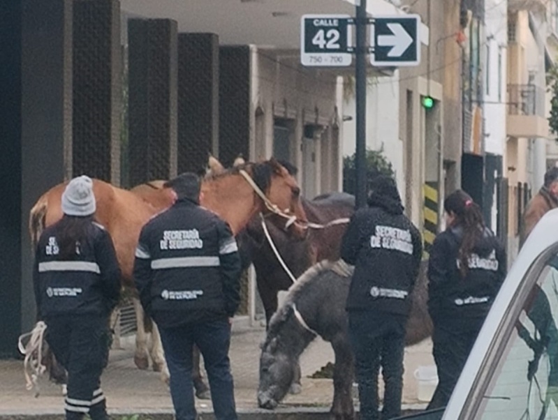 Un insólito hecho tuvo lugar en La Plata y generó confusión entre la comunidad. Cuatro caballos aparecieron en la esquina de 9 y 42 y llamaron la atención de quienes transitaban la zona, muy cargada por el inicio de la semana y el horario y a metros de una escuela.