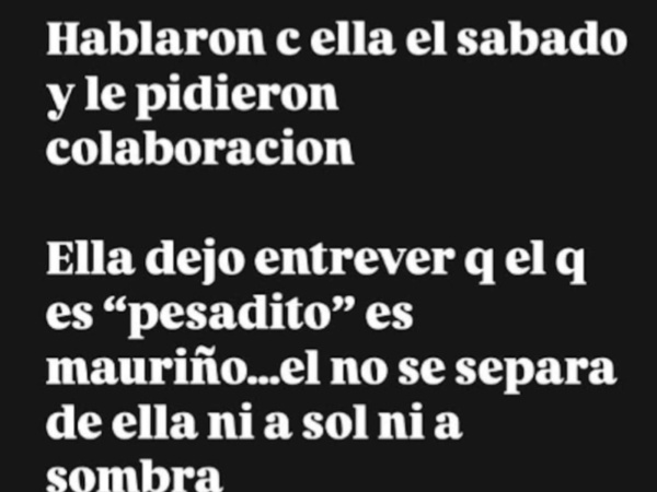 “La nipona está cooperando. Hablaron con ella el sábado y le pidieron colaboración”, relató Latorre, usando el apodo que le asignó al personaje de la China en este escándalo mediático. Sin embargo, también dejó picando una frase que llamó la atención: “Ella dejó entrever que el que es ‘pesadito’ es Mauriño… Él no se separa de ella ni a sol ni a sombra”.
