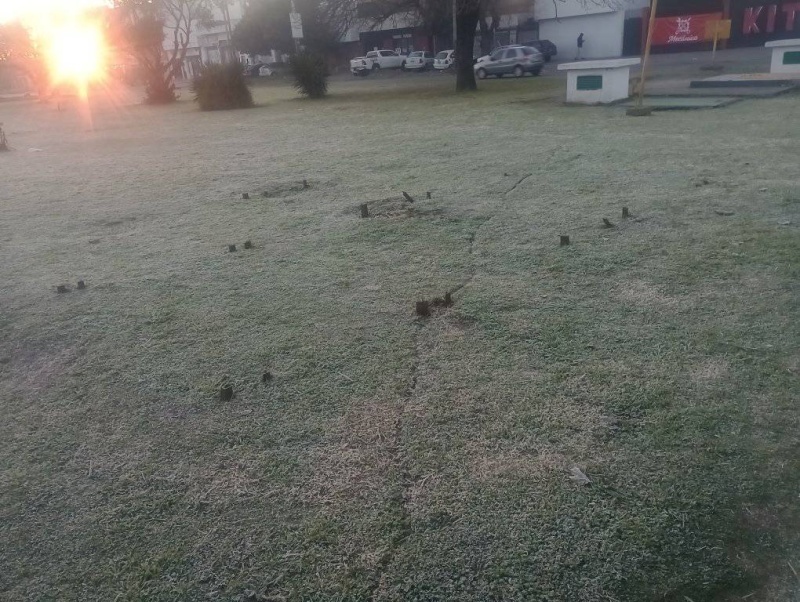 Además, compartió una imagen en que evidencia la situación por la que reclama. En ella, se ven las puntas de los postes asomándose entre el pasto alineadas en tres filas donde anteriormente estaba puesto el cartel. En la forma en que siguen instalados, aumentan la propensión de que una persona desprevenida tropiece o se lastime con ellos.