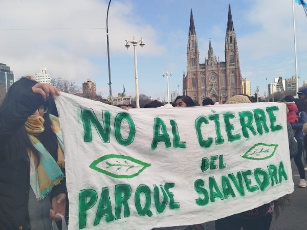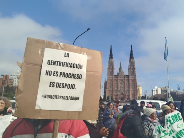 Luego de que el municipio de La Plata cerrara el Parque Saavedra para su puesta en valor, trabajadores, vendedores, puesteros y vecinos se movilizaron frente al Palacio Municipal, en calle 12 e 51 y 53, para manifestar su repudio al intento de cierre del mencionado Parque.