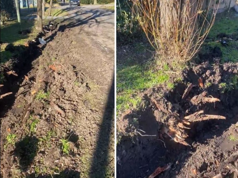 "Rompieron todas las raíces del árbol", agregó respecto de un sauce que quedó parcialmente expuesto y aseguró que "el sauce quedó debilitado con riesgo de caerse sobre mi casa".