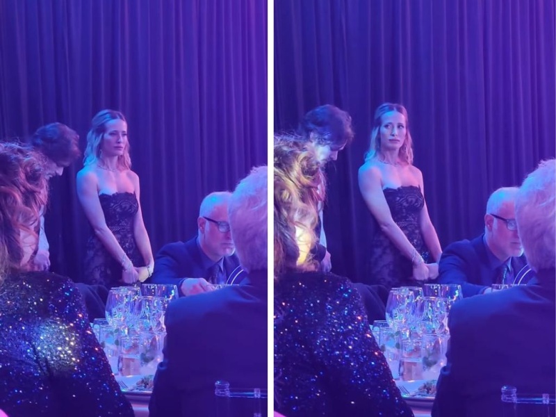 Varias versiones periodísticas sostuvieron que la modelo se quejó con los organizadores del evento, que tuvieron que sacar a dos personas de su mesa para que ella y el cantante se sentaran. "¡Uy, la cara de ella! Está indignada", dijo un panelista de Mujeres Argentinas.