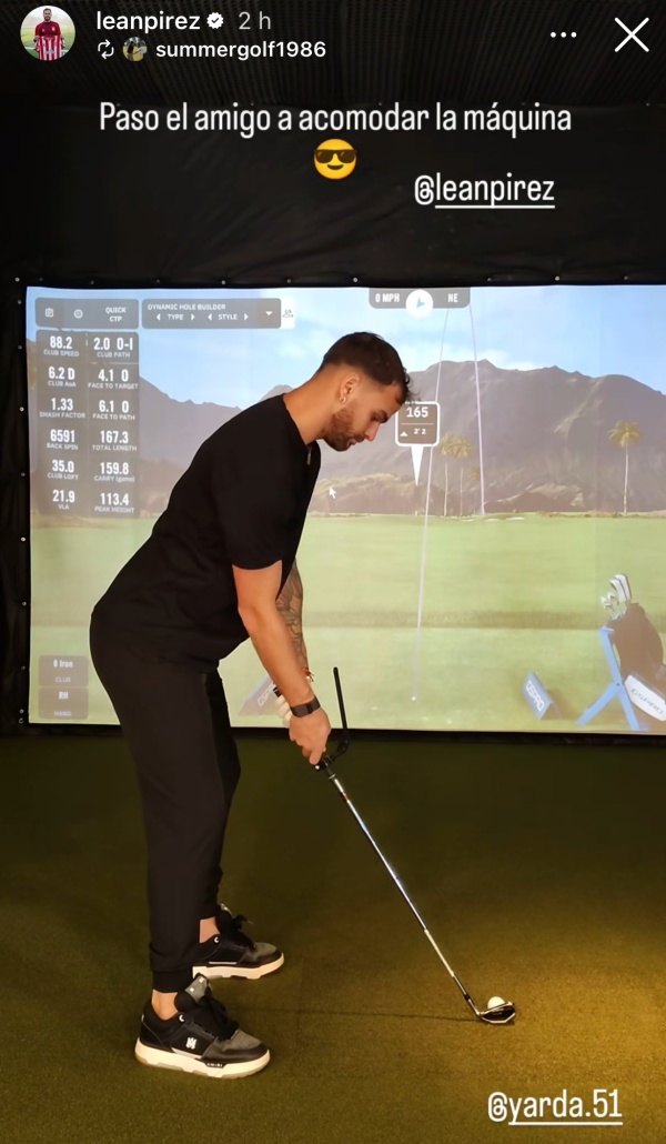 En ese sentido el que se mostró practicando otra actividad fue Leandro González Pirez que a través de una historia de instagram se lo vio jugando al golf en una especie de simulador y con una frase de bienvenida del dueño del comercio: "Pasó el amigo a acomodar la máquina".