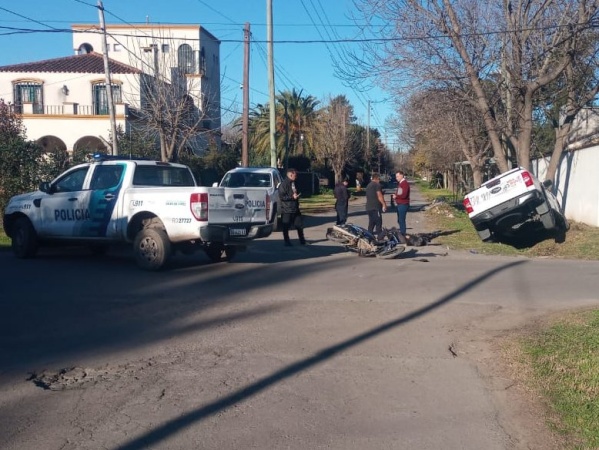 Accidente en 460 y 21: Una camioneta chocó contra una moto y terminó de punta contra un zanjón
