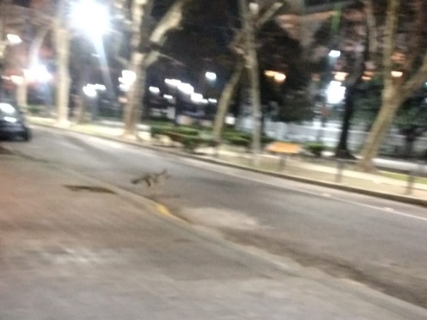 El animal cruzó la calle corriendo cuando casi no había nadie en la ciudad, que recién empezaba a tener sus primeros movimientos.
