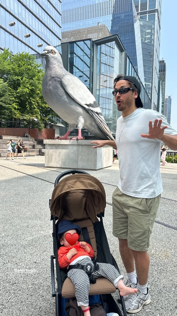 También los acompañó la mamá de Cande, y juntos recorrieron zonas como Hudson Yards, con sus modernos edificios y espacios verdes. En una de las imágenes, Andrés posa junto a una escultura de una paloma y el cochecito de Pino, mientras de fondo se aprecian los rascacielos.