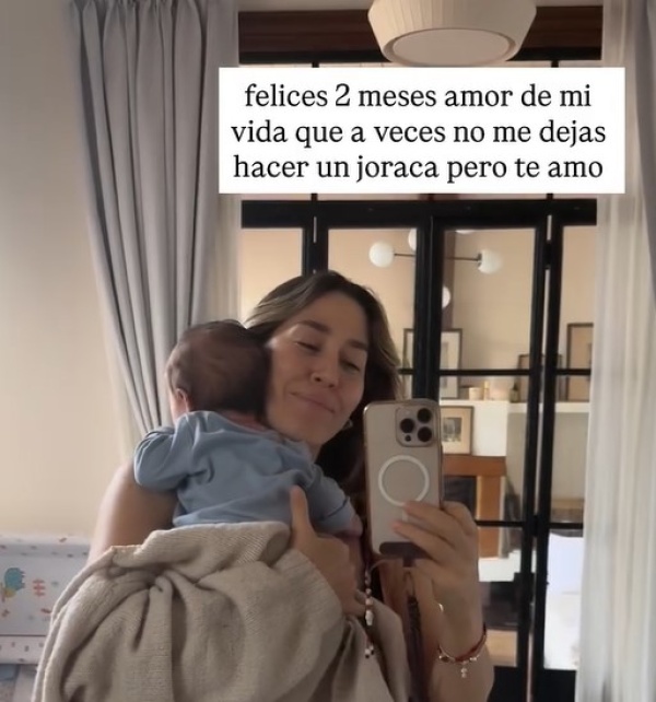 En sus historias de Instagram, publicó un video donde aparece sosteniendo a su hijo frente al espejo y dijo: “Felices 2 meses, amor de mi vida, que a veces no me dejas hacer nada. Pero te amo”. Con su estilo franco, dejó en claro que el amor se mezcla con las dificultades de cuidar a un recién nacido.